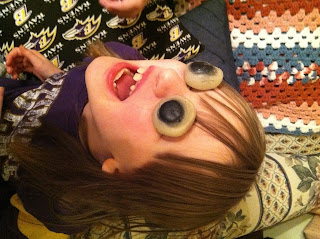 And this one we laughed forever about. Those things on her eyes are sticky eyeballs that will crawl down a wall. The things people come up with!!